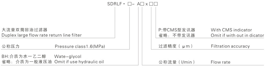 | 注:*為過(guò)濾精度,若使用介質(zhì)為水一乙二醇,帶發(fā)訊器。則過(guò)濾器型號(hào)為SDRLF·BH-A2600X*P,濾芯型號(hào)為SFX·BH-130X*。 | |||||||||||
