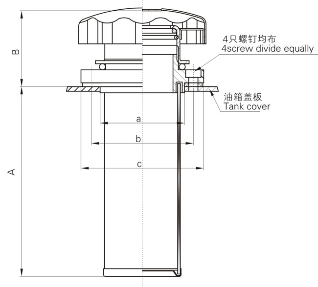 當(dāng)液壓系統(tǒng)工作時油箱內(nèi)油面時而上升或下降,上升時由里向外排出空氣,下降時由外向里吸入空氣。為凈化油箱內(nèi)油液,在油箱蓋板上垂直安裝空氣濾清器,就可以過濾吸入的空氣;同時空氣濾清器又是注油口,注入的新工作油液,須經(jīng)過濾再進(jìn)油箱,從而濾除了油液內(nèi)的臟物顆粒。